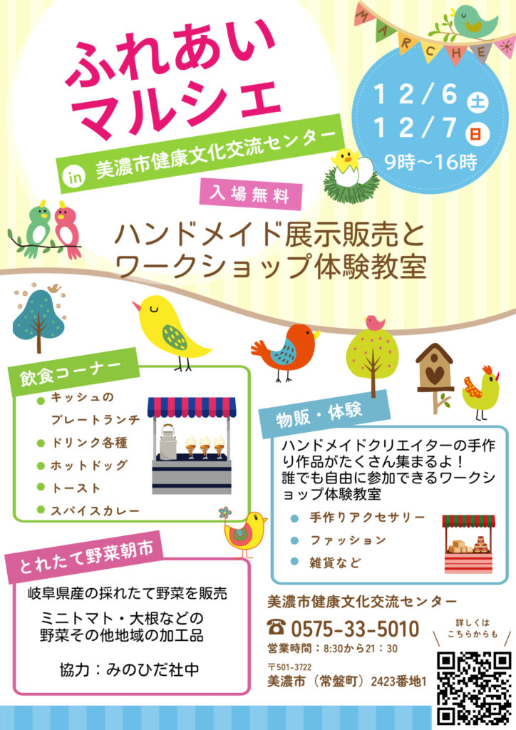 問い合わせ先 美濃市健康文化交流センター TEL:0575-33-5010